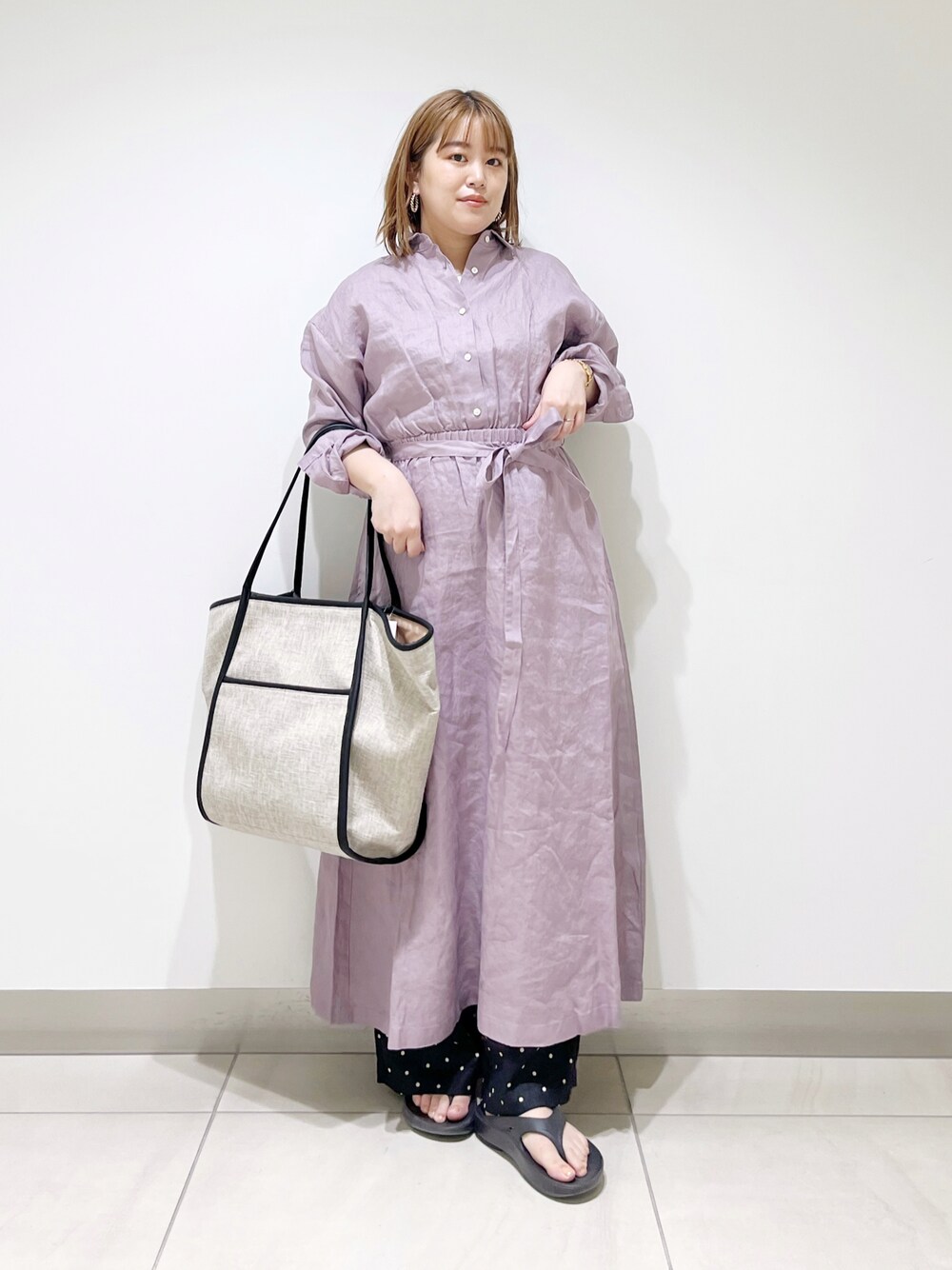 サトみ。(DOORS 札幌ステラプレイス)のワンピース「リネンウエストギャザーワンピース」を使ったコーディネート