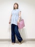 サトみ。(DOORS 札幌ステラプレイス)のシャツ/ブラウス「ウエストギャザーストライプシャツ」を使ったコーディネート