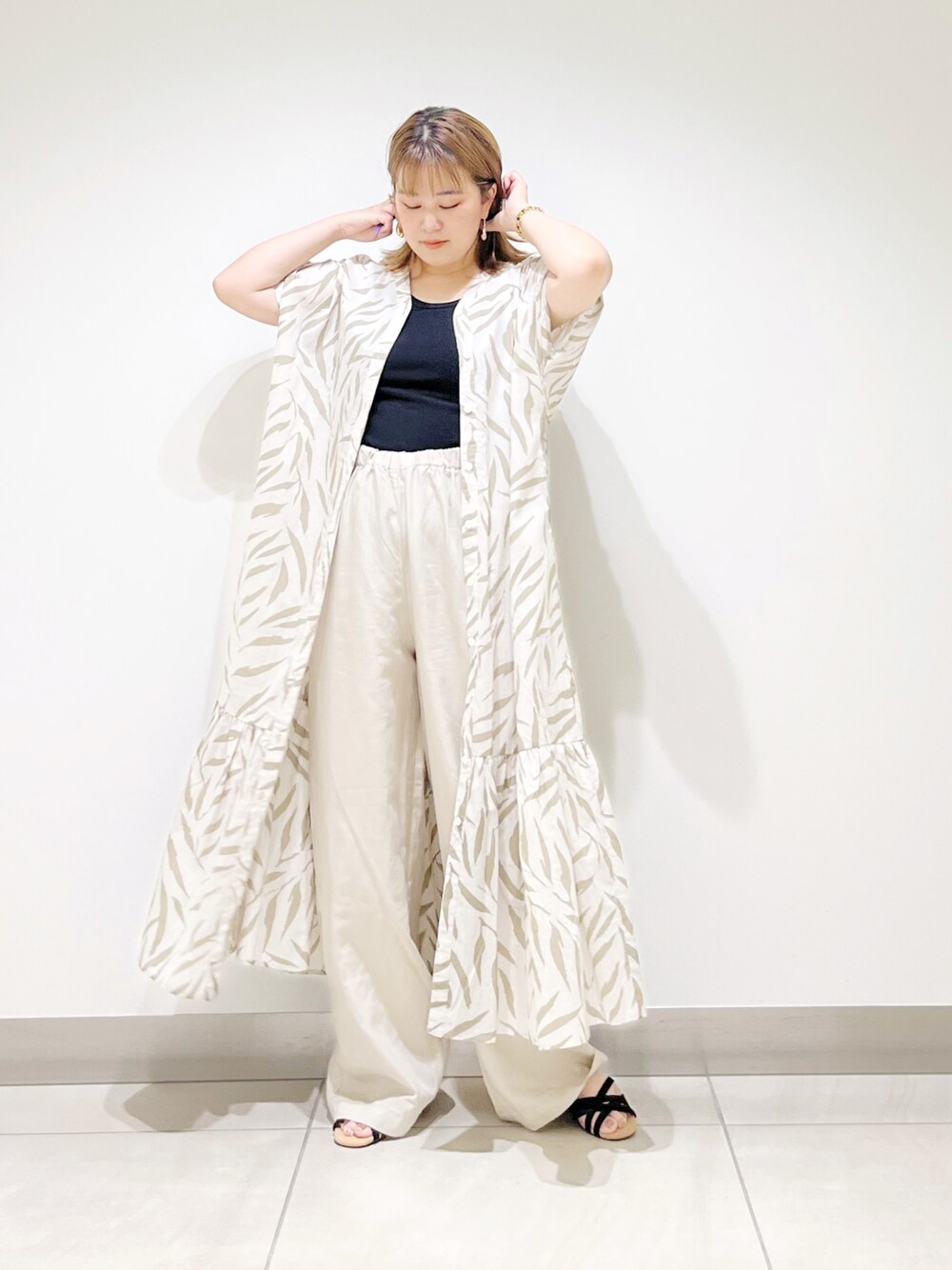 サトみ。(DOORS 札幌ステラプレイス)のワンピース「Leafプリントティアードワンピース」を使ったコーディネート
