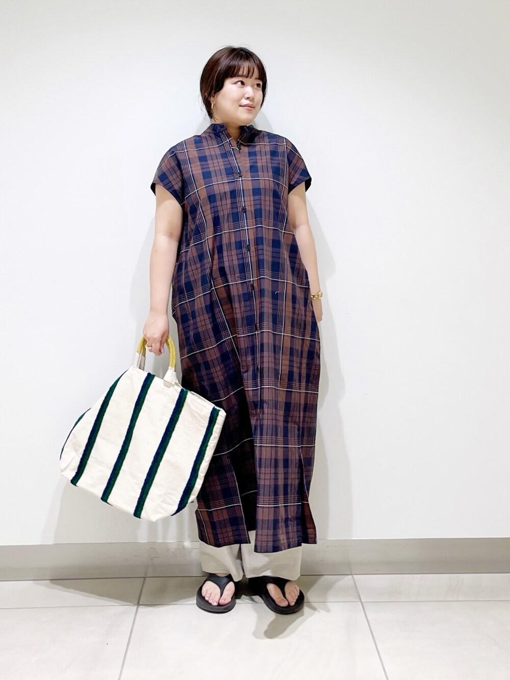 サトみ。(DOORS 札幌ステラプレイス)のワンピース「FORK&SPOON バンドカラーフレンチスリーブシャツワンピース」を使ったコーディネート