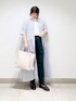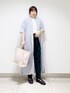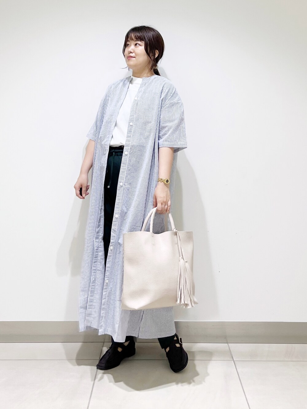 サトみ。(DOORS 札幌ステラプレイス)のワンピース/ドレス「ストライプ5分袖シャツワンピース」を使ったコーディネート