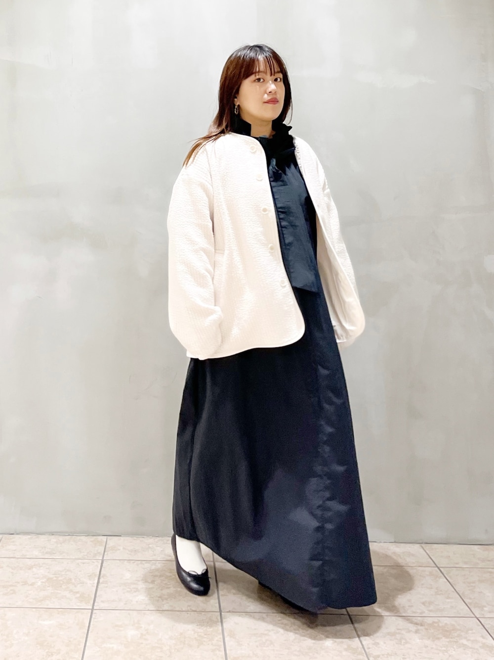サトみ。(DOORS 札幌ステラプレイス)のノーカラージャケット「キルトノーカラージャケット」を使ったコーディネート