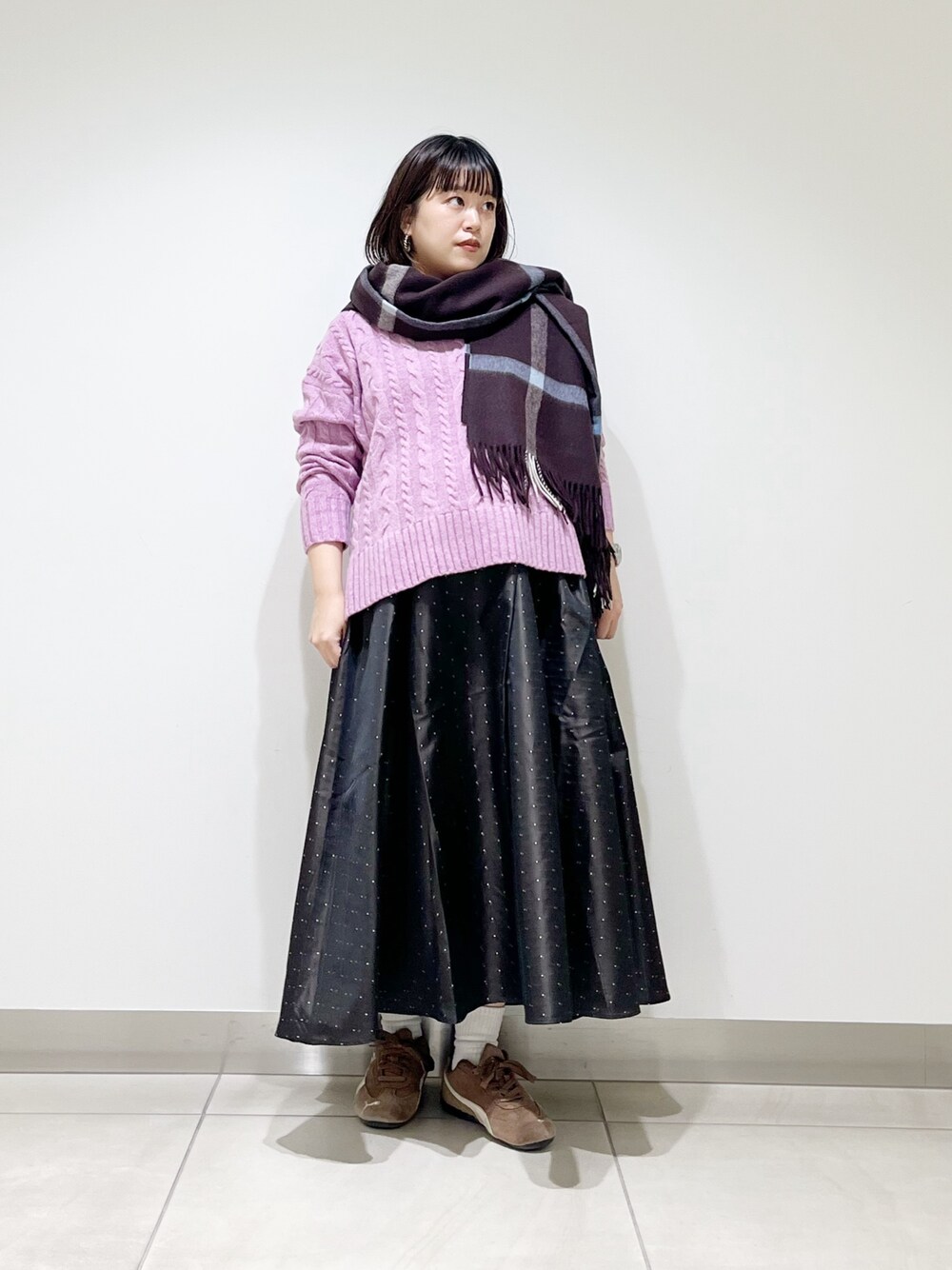 最近欲しいゲームがあるアベです。 欲しいけどゲームをする時間がなかなかないので迷っています。 本日は色がとってもかわいいニットをきてみました。 ケーブル編みのデザインが 冬らしくてかわいいです。 Vネックなのでスッキリ着こなせますよ♪ ドット柄のハリのあるスカートで キレイ目に合わせてみました。 毎日大好きなコーディネートをアップしておりますので、ぜひスタッフフォローをお願いいたします♪