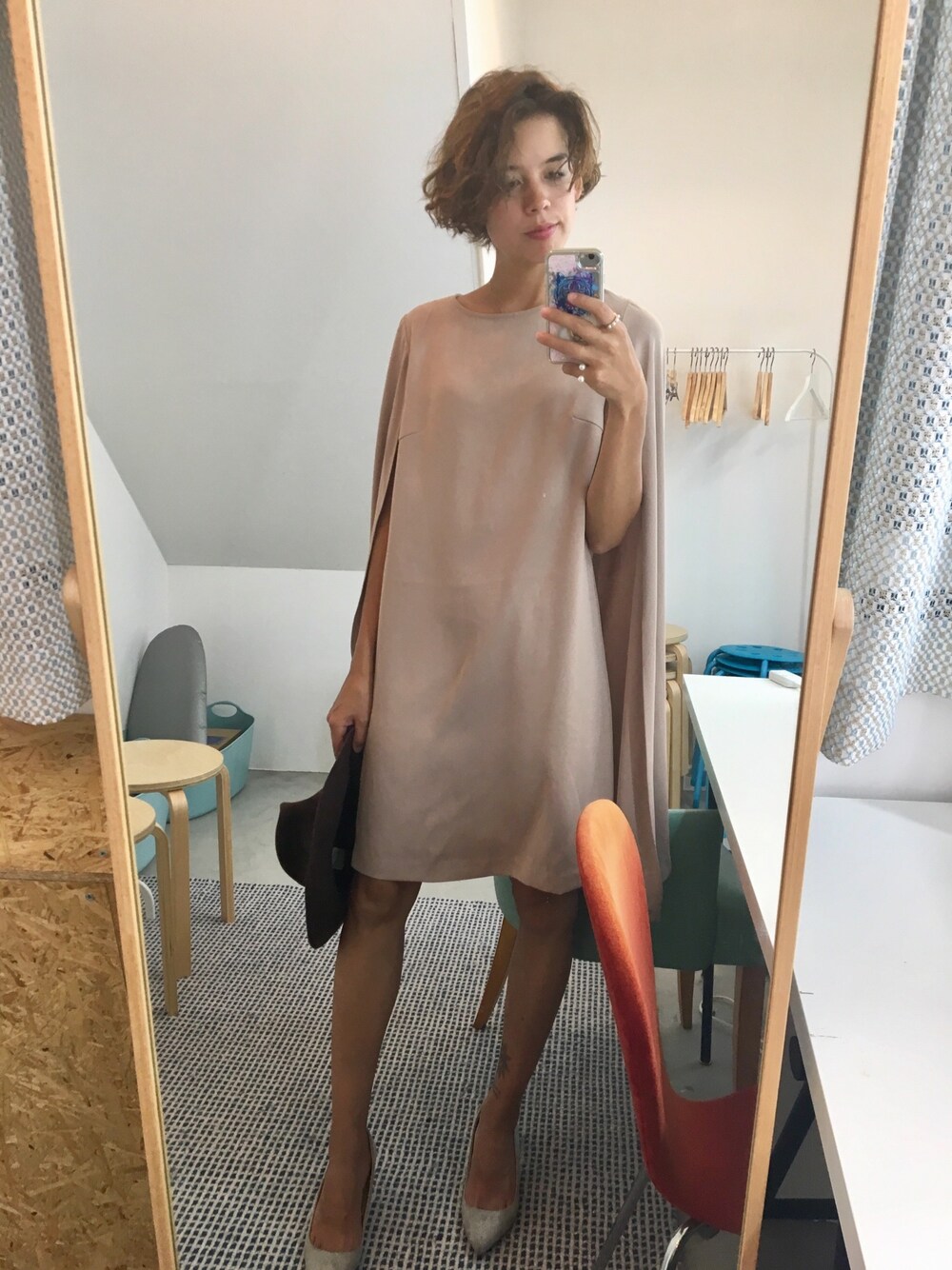 先日着た #marjour のドレス♥️ マント風だから、1枚で肩は出ないしスッキリ見えるすぐれもの! 結婚式やパーティーに重宝しそう🌹