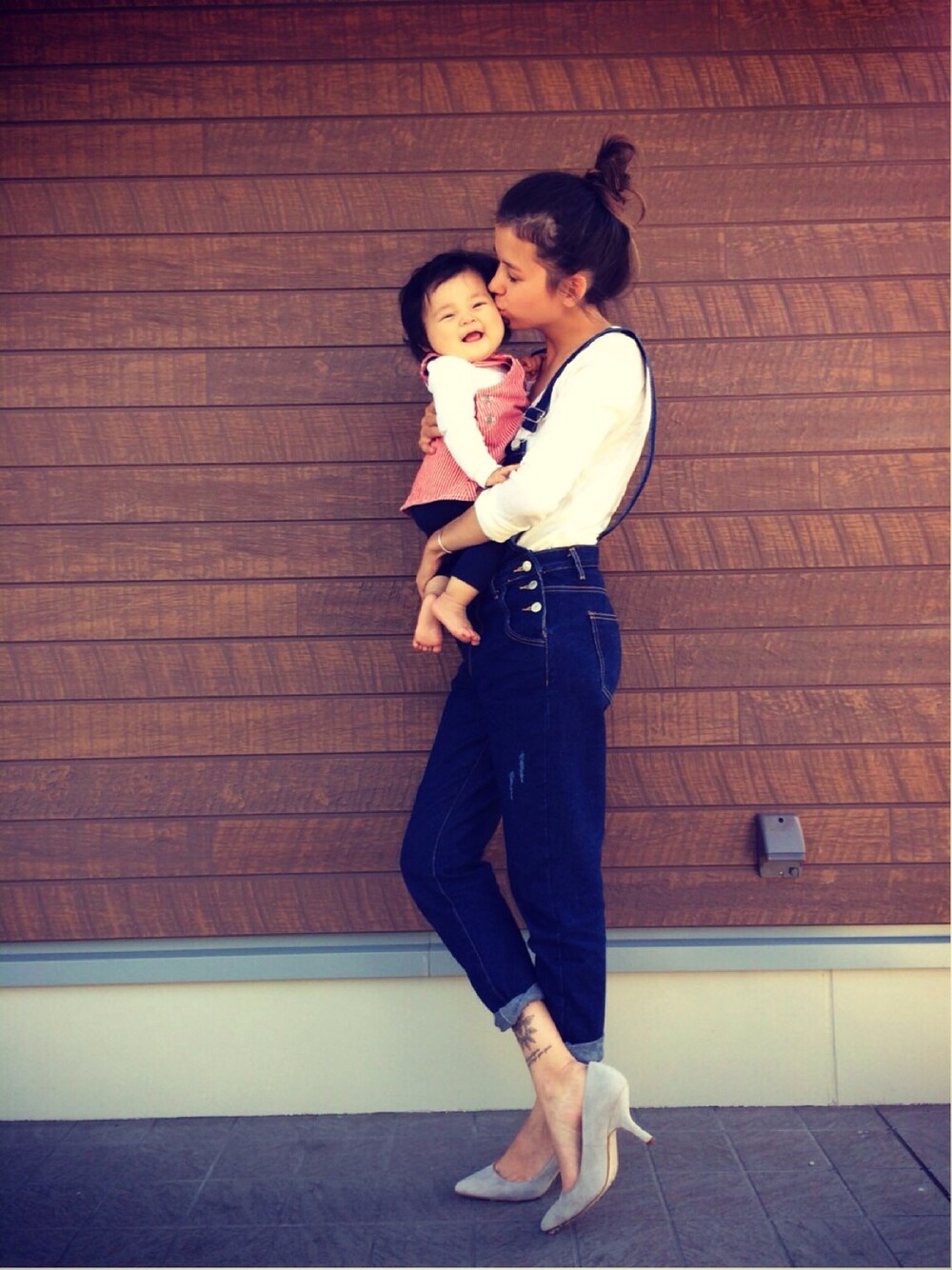 初めての親子リンクコーデ🌞🌴🌺 オーバオール普段あまり着ないけど、娘と一緒に着たくて着てみました…♡