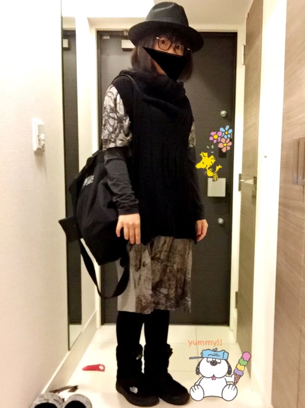 ♡、セーブありがとうございます(^ ^) モードっぽくしてるつもりです^^; ベストというかニットはとてもヨウジらしいデザイン♡写真だと分かりにくいですが、首元が大きく空いたタートルでサイドも後ろが長くベストとも言えない感じ^^; このワンピも買って長いですが、全面総柄があんまりで出番少なかったので登場できて嬉しいです♡ 先日セカンドハネムーンでスペイン広場を訪れたときも同じコーデしてました☆☆ イタリア製のハット、現地で3000円くらいで買えちゃいました〜♡