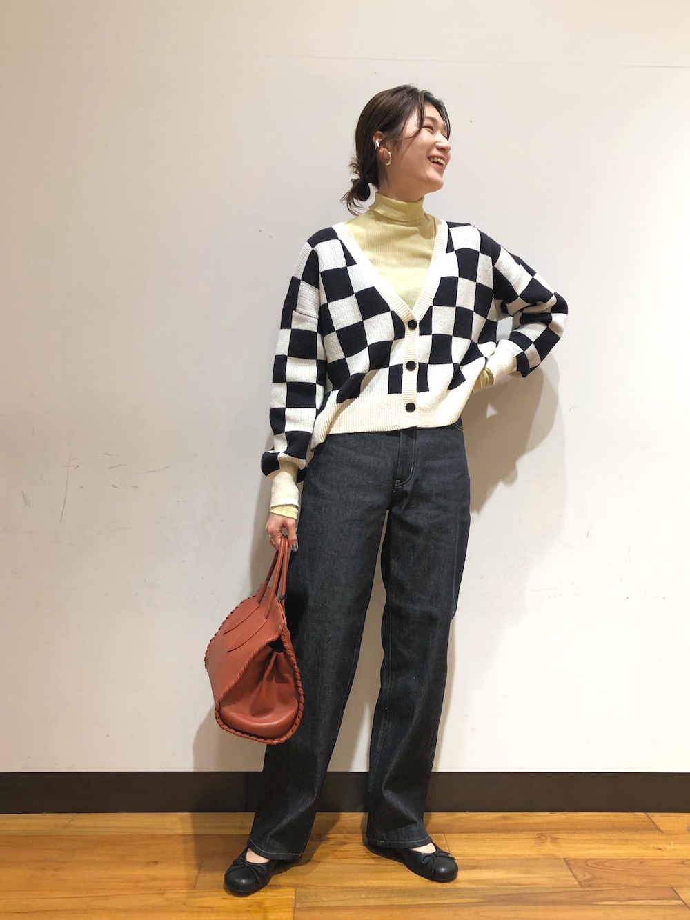爽やかなイエローのタートルネックに、チェック柄カーディガンを合わせて、こなれ感の出るスタイリングにしてみました♡ デニムでもインディゴだと、カジュアルになりすぎずキレイめな印象になりますよ♪ 春こそ色物をたくさん取り入れていきましょう◎