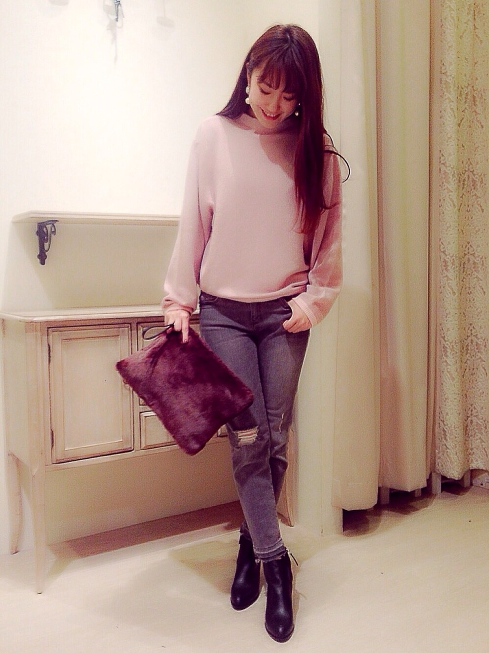 アンゴラ素材が入っているので 触り心地抜群のニットです😉💕 もふもふ👋 ファークラッチバッグのもふもふと 合わせて、冬支度CODEですー⛄️