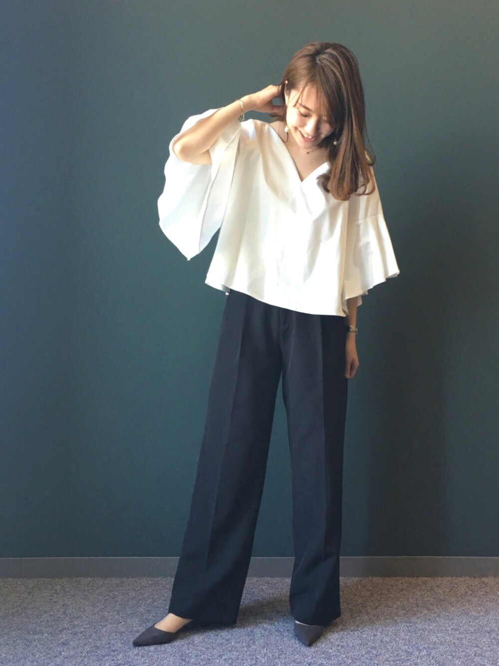 RANDAのAW新作、 フレアスリーブのトップス着ました ♡ Vネックになっていて、トレンドアイテムです!