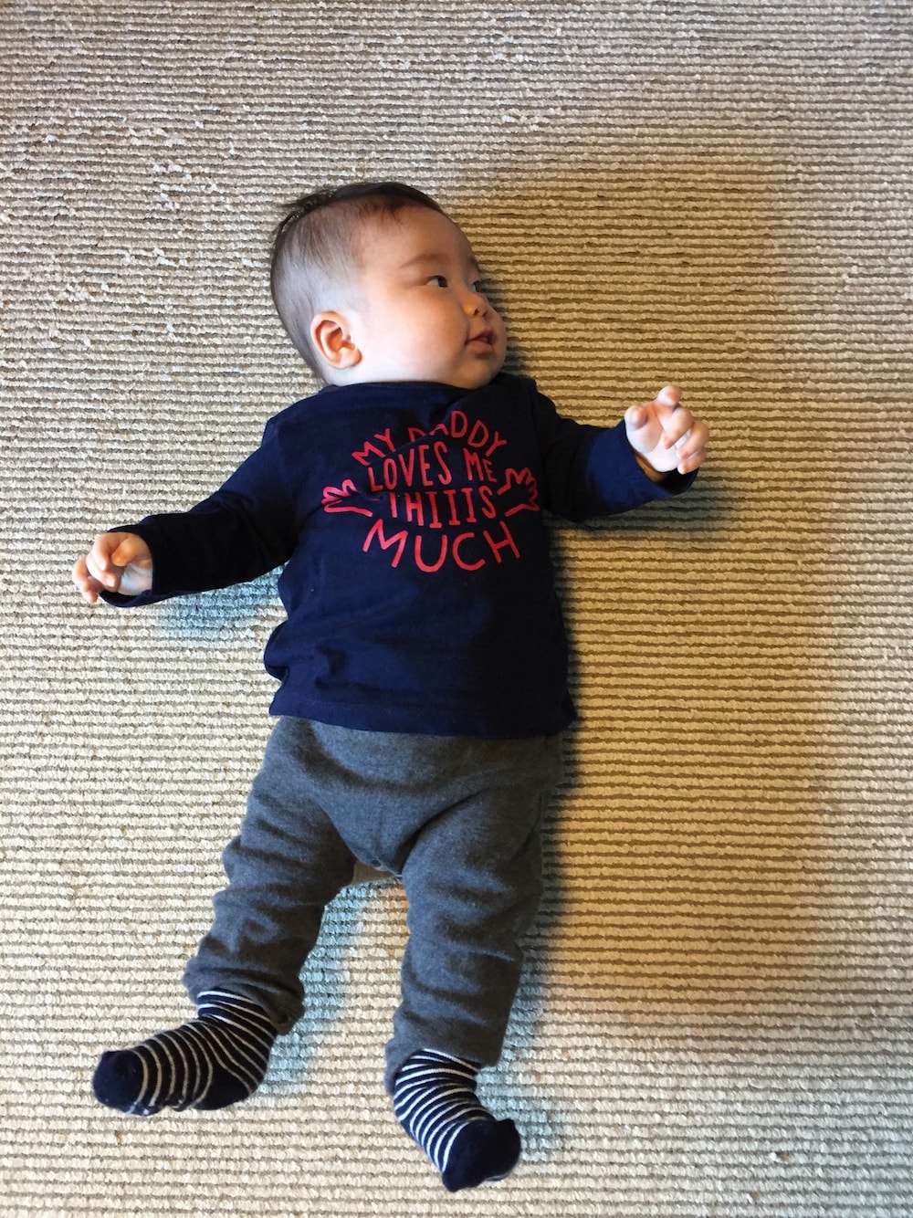 靴下とTシャツはお揃いの紺色で統一! 冬らしく暗めの色で★