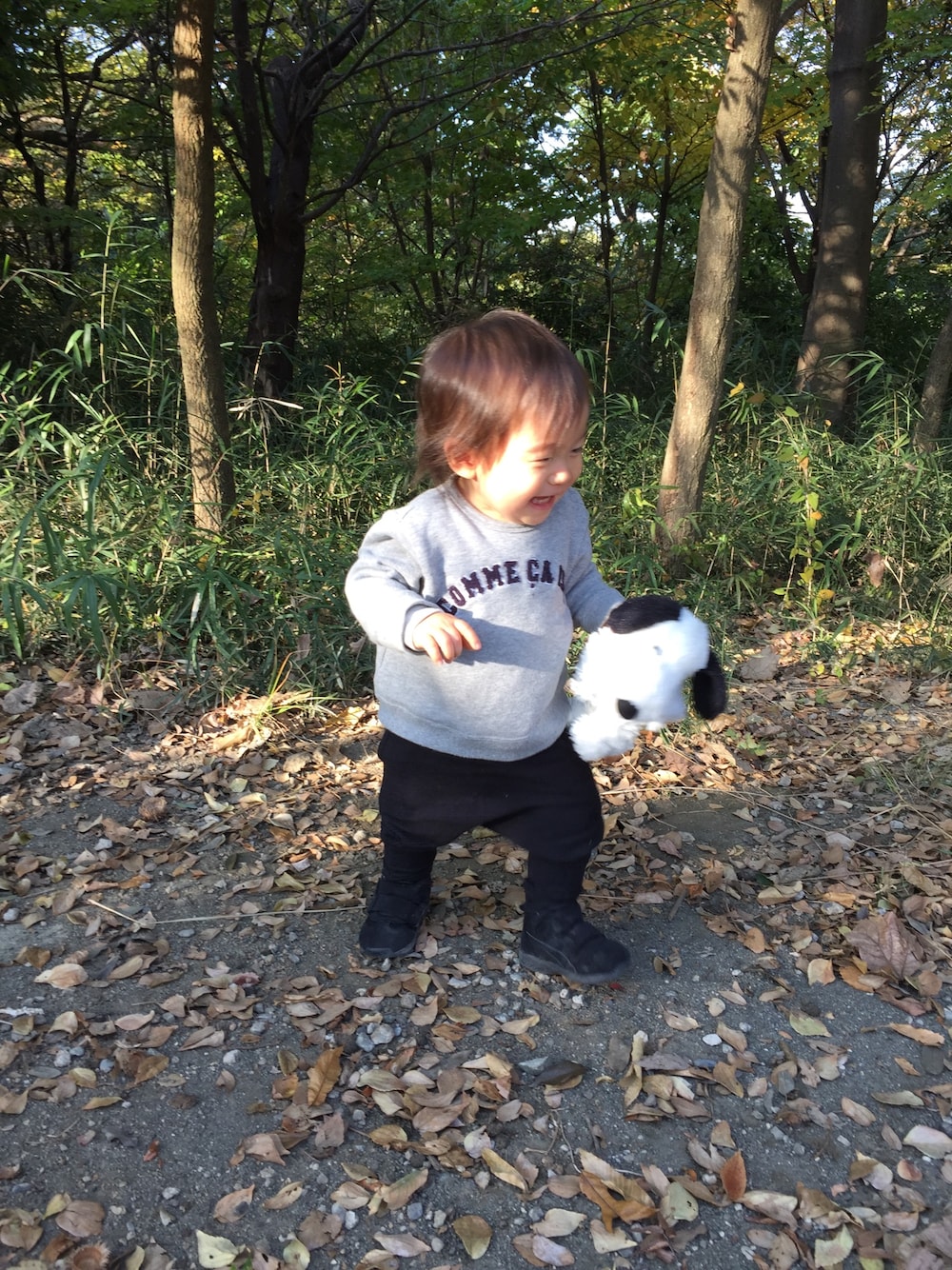 サルエルパンツですが足が短くて…😅 ひたすら葉っぱと石と砂を集めてました。。