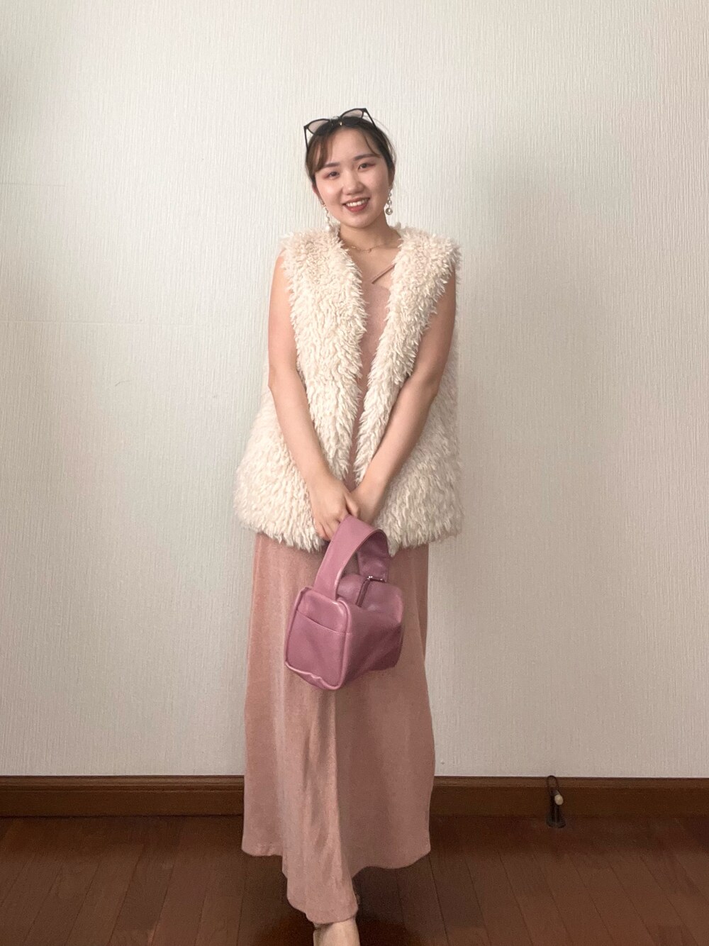 さとみ🫐(24) のベスト「フェイクファーベスト」を使ったコーディネート