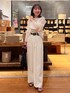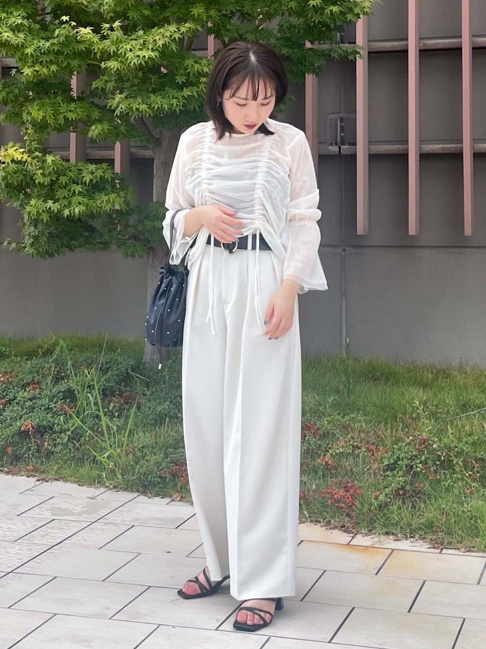 ワントーンコーデ🤍 トップスのギャザーを短めに調整して低身長でもスタイルアップコーデに♡♡ パンツは身長153cmでサイズ36ならぺたんこ靴でもいける丈感でした!