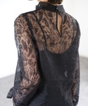 さとみ🫐(24) のシャツ/ブラウス「シアージャガードブラウス / original sheer jacquard blouse シアーブラウス プルオーバー レイヤード ミドル丈 花柄 ブルー イエロー ブラック スタンドカラー ハイネック ジャガード」を使ったコーディネート