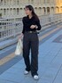 モノトーンでまとめた大人カジュアルコーデ🖤🤍 定番のカーゴパンツ×スニーカースタイルに、首元に一癖あるキレイめトップスを合わせて大人っぽく…💄 トップスはリブ素材なので縦ライン強調で着痩せも叶う優秀さです…😏