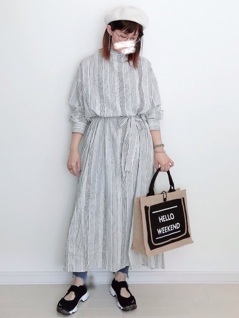 UMiSatoのワンピース「BACKオープンストライプワンピース」を使ったコーディネート