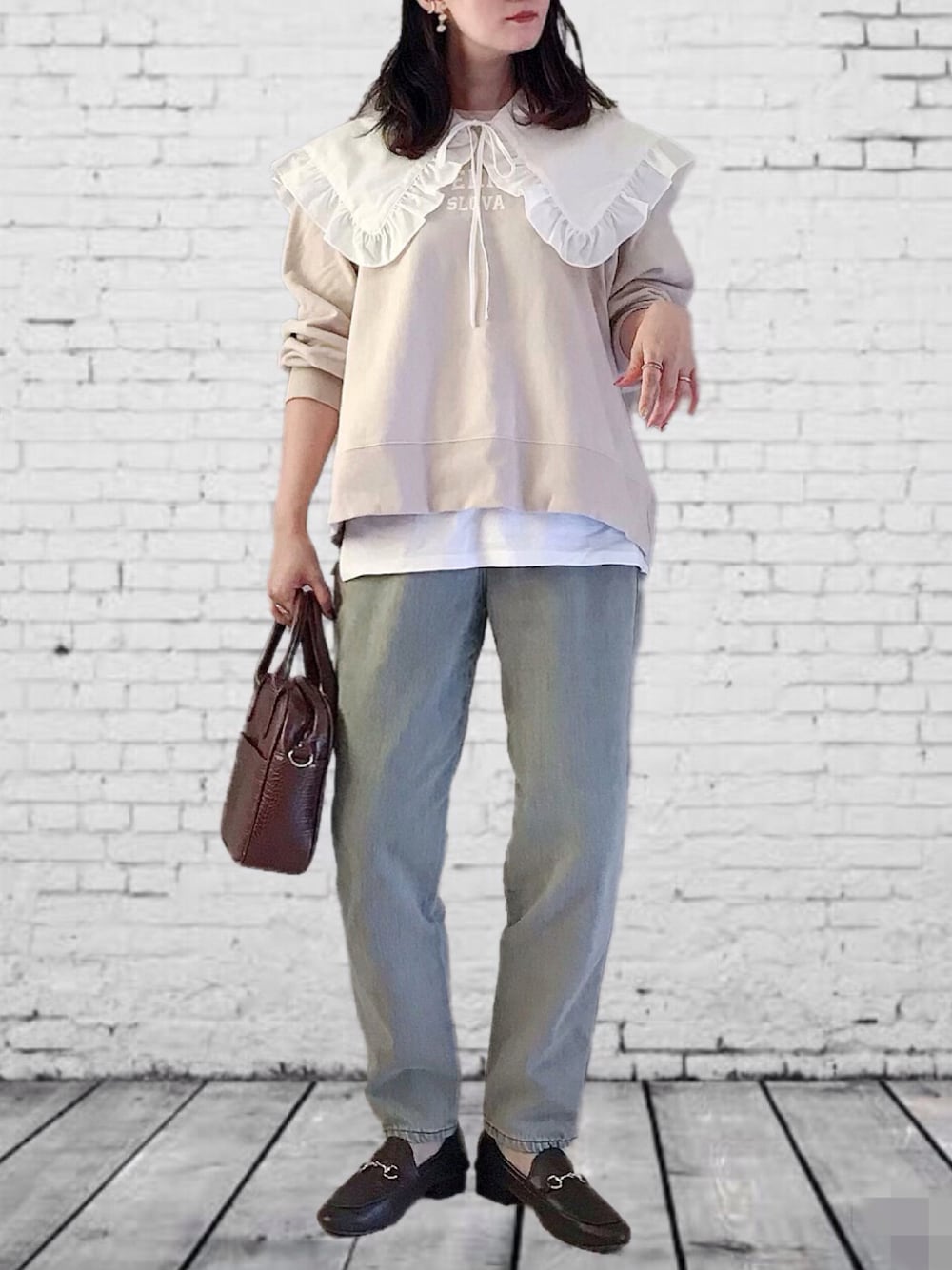 こんにちは😊 今日もご覧頂きましてありがとうございます🎶 貴重なお時間の中、♡+フォローして頂き、 とっても嬉しく、心より感謝致します🙏💗 昨日のコーデを素敵な🗂インして下さった皆様❤️ たくさんありがとうございます🙇♀️ すごく嬉しいです😭✨ いつもまとめてのお礼で申し訳ございません💦 感謝しています🙏💗 ☆〜☆〜☆〜☆〜☆〜☆〜☆〜☆〜☆〜 ▶︎SOMETHING/サムシング 『【年間ベストセラー】 FRENCH NOUVEAU Wフロントルーミースリムデニムパンツ』 カラー:ベージュ サイズ:M カラー表記ベージュとなってるけど、ちょっとライトグレーっぽいお色味です! 持ってない色味だったから嬉しい😆 形はテーパードでとっても綺麗なライン✨ 🏷つけ襟に乗っかって、 いつものカジュアルなスウェット✖️デニムに 大きなつけ襟を付けてみたんだけど… 似合ってるかどうかわからない🤣 でもちょっと可愛らしく、トレンドな感じがするから、 これはこれで良きかな〜😁 #pr