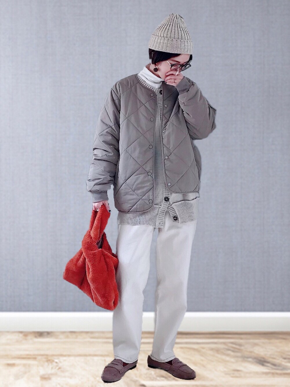 UMiSatoのその他アウター「中綿キルティングノーカラージャケット」を使ったコーディネート