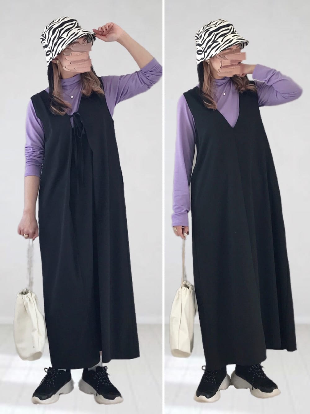 おはようございます☕️うみです😊 いつもご覧頂きましてありがとうございます🎶 貴重なお時間の中、♡+フォローして頂き とっても嬉しいです🙏✨励みになります‼️ 昨日の投稿を素敵な🗂インして下さった皆様❤️ たくさんありがとうございます🙇♀️ 感謝感謝です🙏✨ まとめてのお礼で申し訳ございません💦 ☆*・・*:.。..。.:**・・*・。..。.:*・・*:.。..。・*・・**:.。..。.:*・・*☆ ▶︎Bab 『前後2WAYジャンパーワンピース』 カラー:ブラック サイズ:TL 前後どちらで着ても可愛いジャンスカが🆕in✨ リボンの方と深Vネックの方で印象を変えられるよ😆 ストンと落ち感があって、体のラインを拾わず、 体型カバーもできちゃう素敵アイテム🙌♡ 選べるサイズ展開も嬉しい🙌 オールシーズン着れる素材だから、着回し力も抜群👍 合わせるインナーによっては、フォーマルにも👍🙆♀️ 今回は、パーポーのシアータートルに ゼブラ柄🦓バケハでカジュアルにまとめてみました☝️ #pr