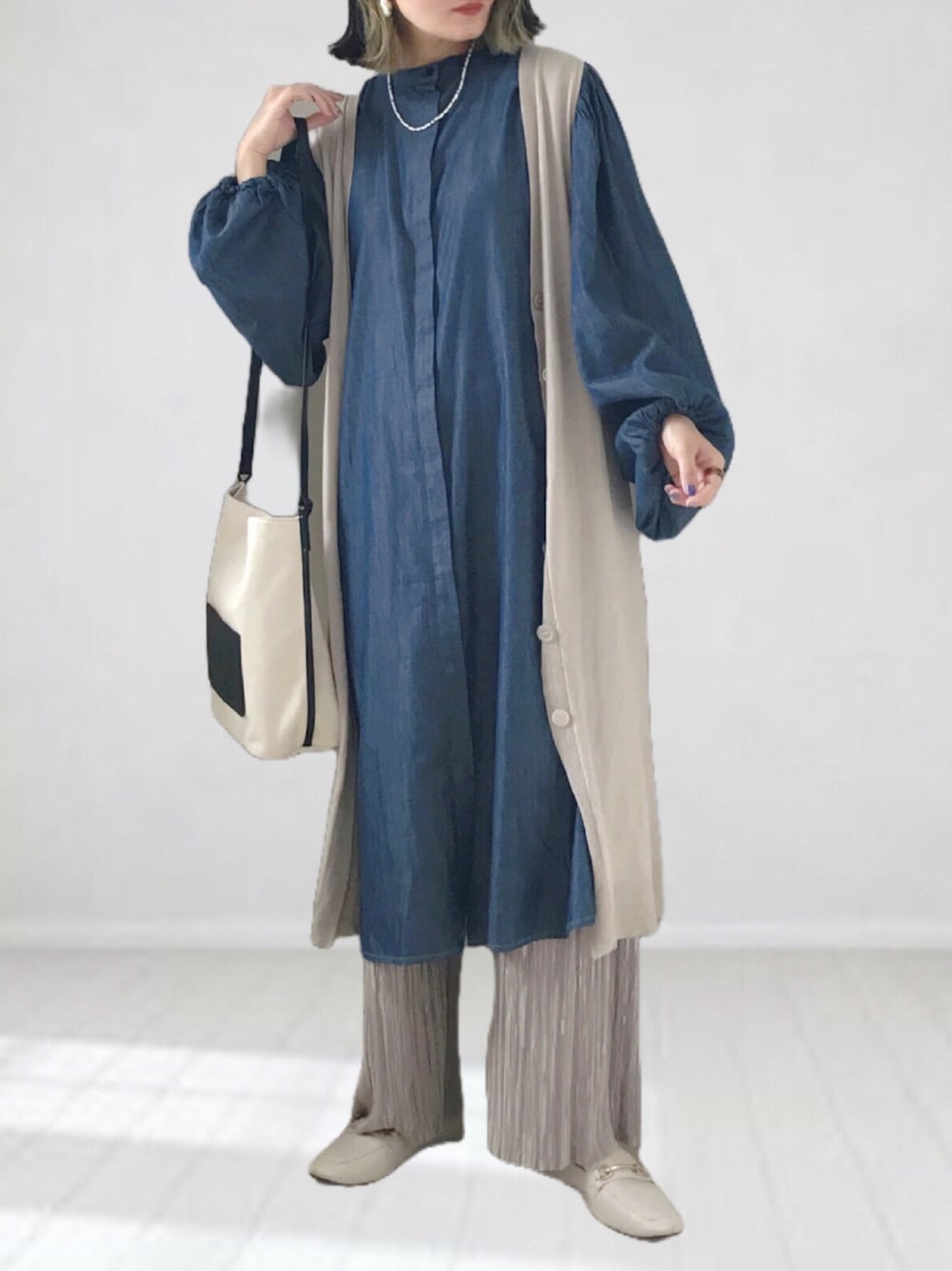 UMiSatoのワンピース「【THE DAYZ TOKYO】ボリュームスリーブデニムワンピース」を使ったコーディネート