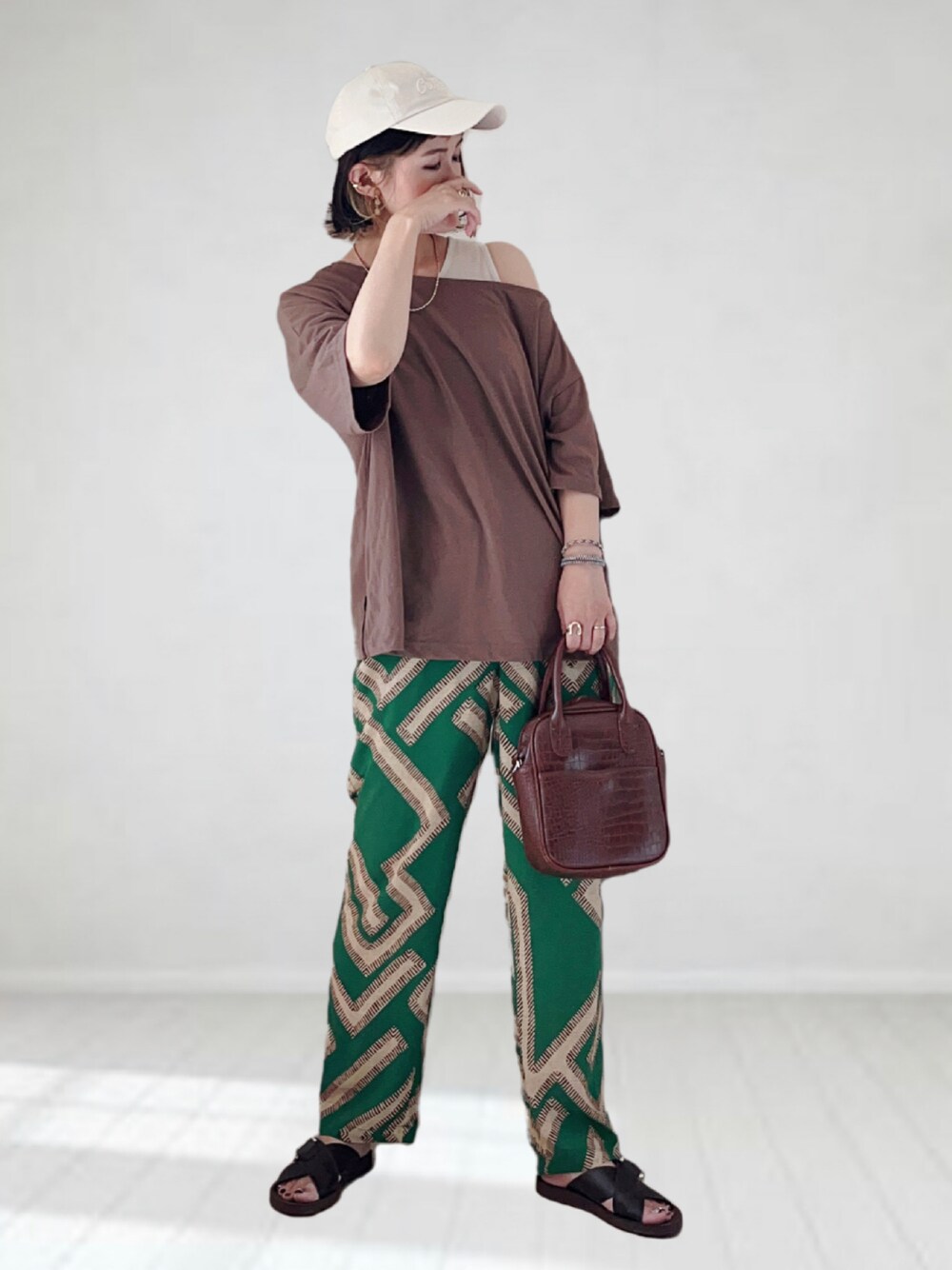 こんにちは🥤うみです😊 いつも見て下さり、貴重なお時間の中、 ♡+フォローして頂き、ありがとうございます🙏✨ とっても嬉しいです💕 ☆*・・*:.。..。.:**・・*・。..。.:*・・*:.。..。・*・・**:.。..。.:*・・*☆ ▶︎KBF 『メイズパターンイージーパンツ』 ◇カラー:グリーン ◇サイズ:F このパンツめちゃくちゃヘビロテしてます🎶 トップスをシンプルにしても インパクトある柄で一気におしゃれ度UP⤴️ サラサラの生地感と、ウエストも総ゴムだから、 ストレスフリーな穿き心地で、ほんとお気に入り♡ #pr ☆*・・*:.。..。.:**・・*・。..。.:*・・*:.。..。・*・・**:.。..。.:*・・*☆ 昨日の投稿を素敵な🗂インして下さった皆様❤️ たくさんありがとうございます🙇♀️ 感謝しています🙏✨ まとめてのお礼で申し訳ございません💦