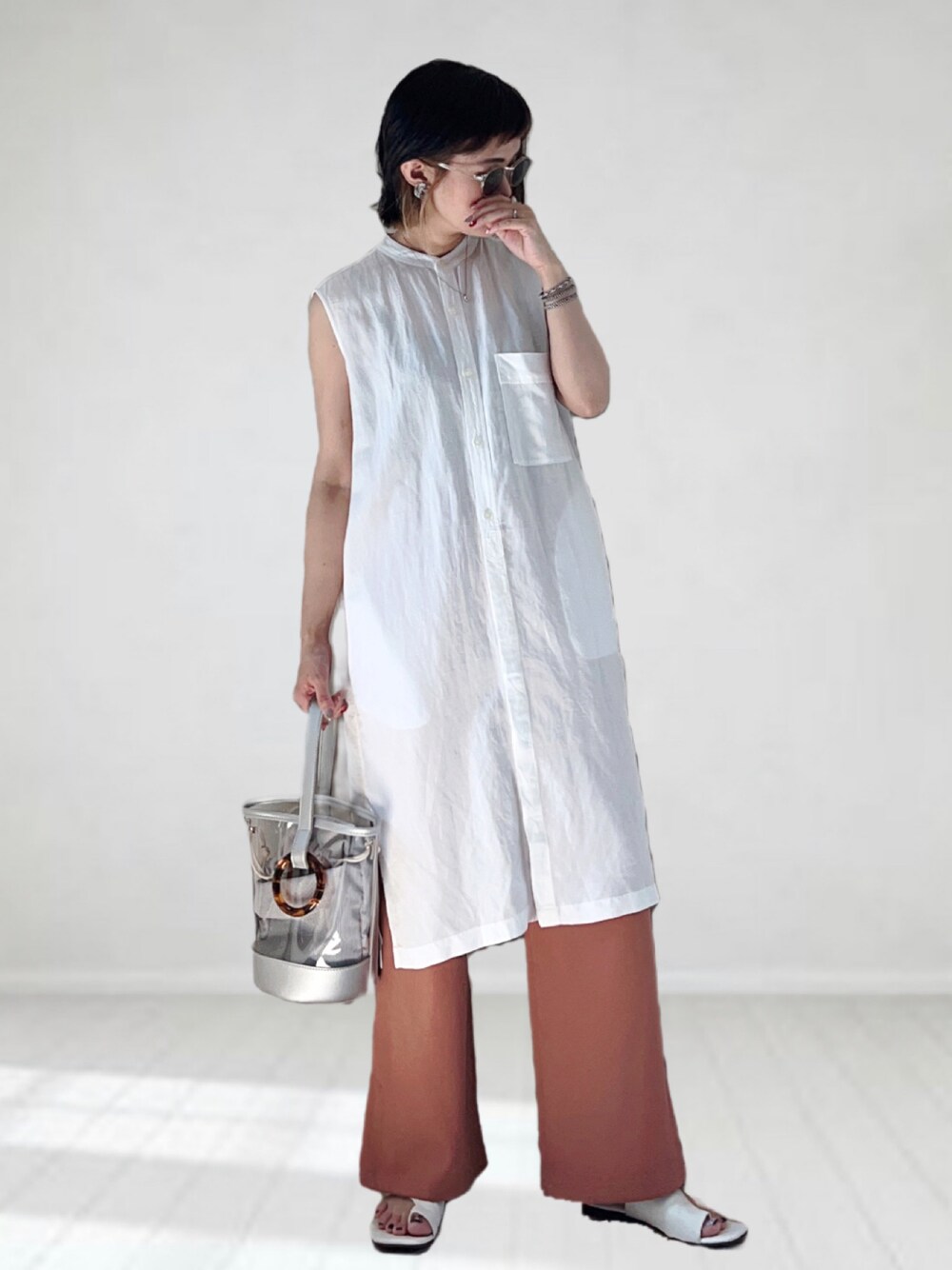UMiSatoのシャツ/ブラウス「FORK&SPOON ノースリーブロングシャツ」を使ったコーディネート