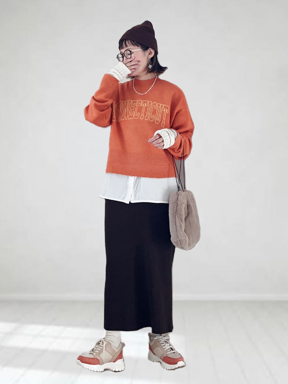 UMiSatoのニット/セーター「ロゴプリントニット」を使ったコーディネート