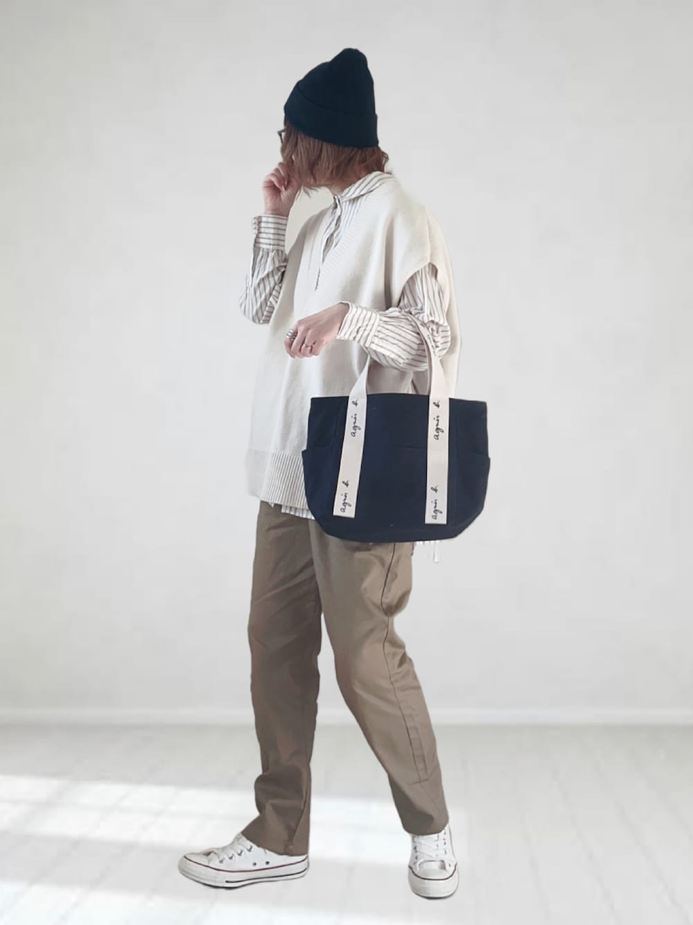こんにちは☕️うみです😊 今日から3月ですね🌸 今月も宜しくお願いします❤️ 北海道も昨日今日と暖かくて、雪解け進んでおります🎶 でもまだきっと一回くらいは ドカ雪降りそうな気はするけど…💦 いつも見て下さり、貴重なお時間の中、 ♡+フォローして頂き、ありがとうございます🙏✨ ☆*・・*:.。..。.:**・・*・。..。.:*・・*:.。..。・*・・**:.。..。.:*・・*☆ ▶︎agnes b. 『WEB限定 SAS22-01 トートバック』 ◇カラー:ブラック サッと持ち運べる手軽さが魅力のトートバッグ✨ しっかりしたキャンバス地で、 大人カジュアルコーデにぴったり🎶 ブランドロゴが入った持ち手のテープで、 可愛さに抜かりないよ❣️ 淡色コーデに、小物はブラックで締めてみました☝️ #pr ☆*・・*:.。..。.:**・・*・。..。.:*・・*:.。..。・*・・**:.。..。.:*・・*☆ 前回の投稿を素敵な🗂インして下さった皆様❤️ たくさんありがとうございます🙇♀️ まとめてのお礼で申し訳ございません💦 感謝しています🙏✨