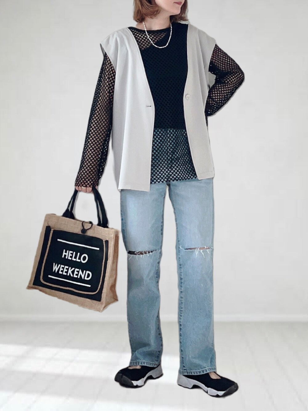 UMiSatoのデニムパンツ「SOMETHING/サムシング ELSAヴィンテージストレートデニムパンツ」を使ったコーディネート