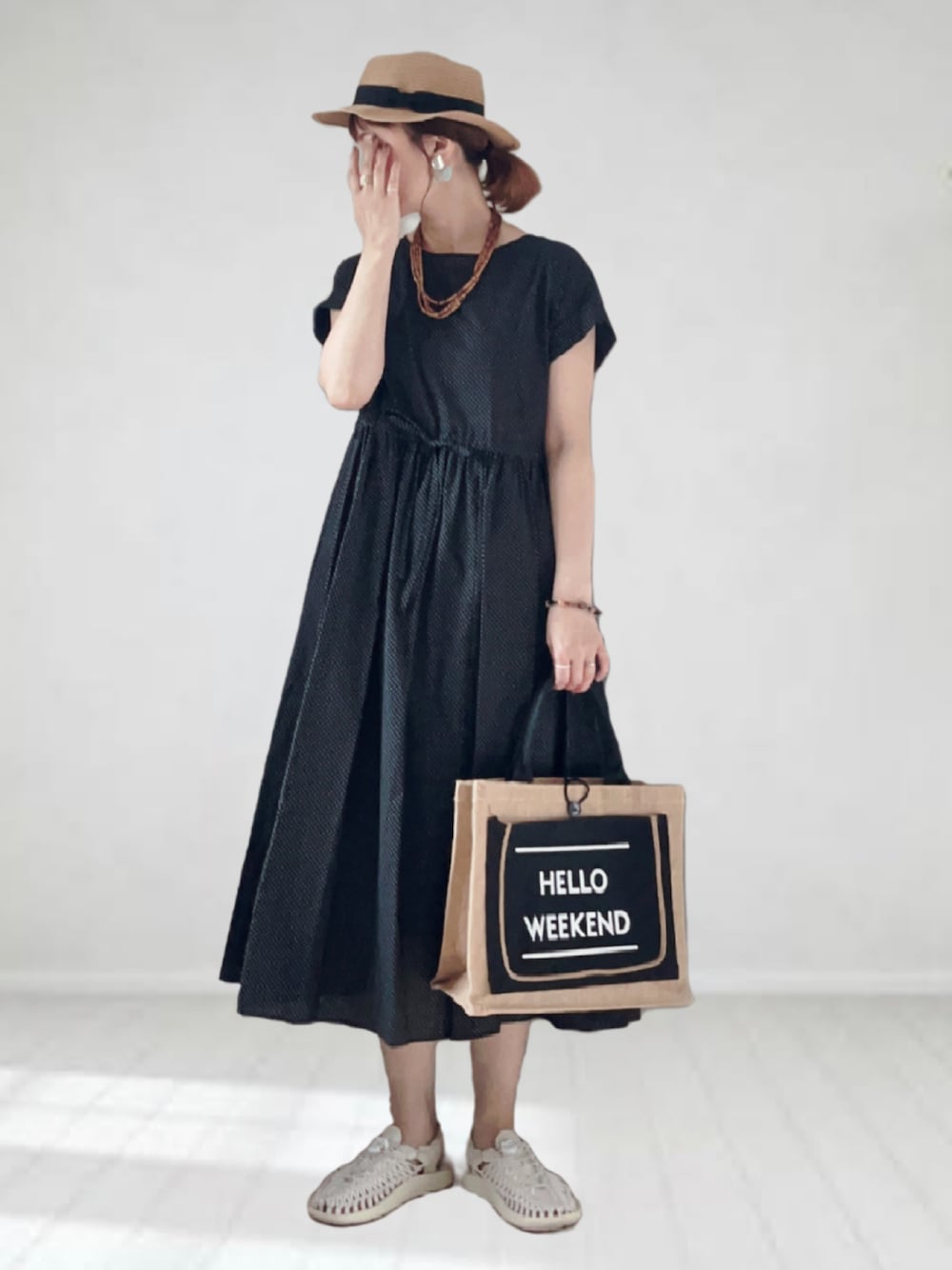 UMiSatoのワンピース「WEB限定 ドット コットン 半袖 ロング ワンピース」を使ったコーディネート