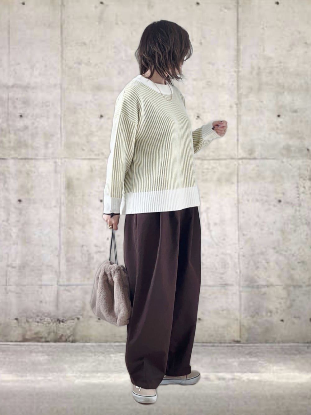 UMiSatoのニット/セーター「ストライプ柄ニットプルオーバー」を使ったコーディネート