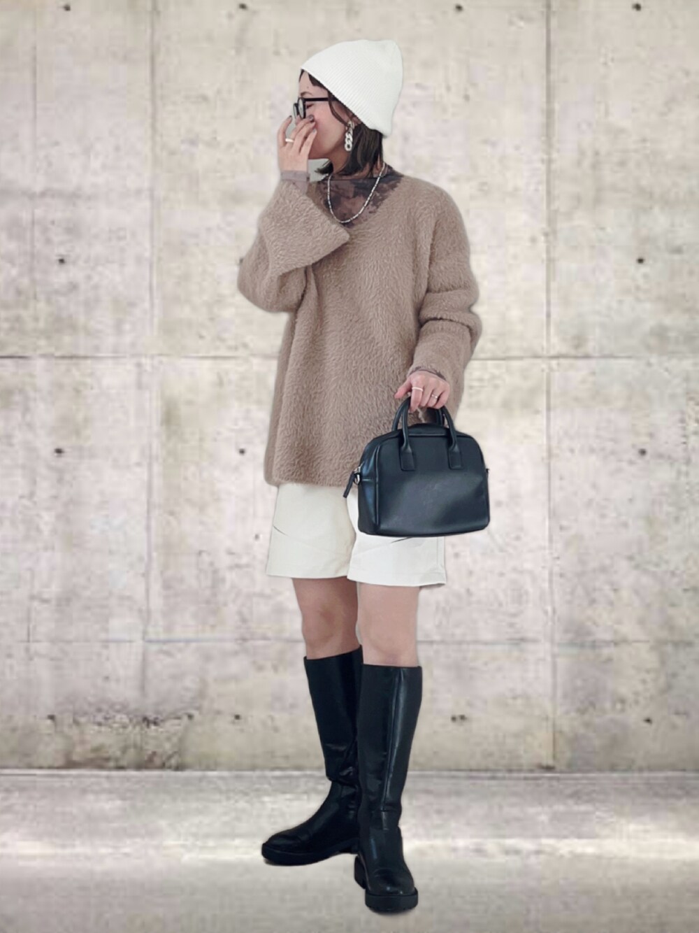 UMiSatoのニット/セーター「Vネックシャギーニットプルオーバー」を使ったコーディネート