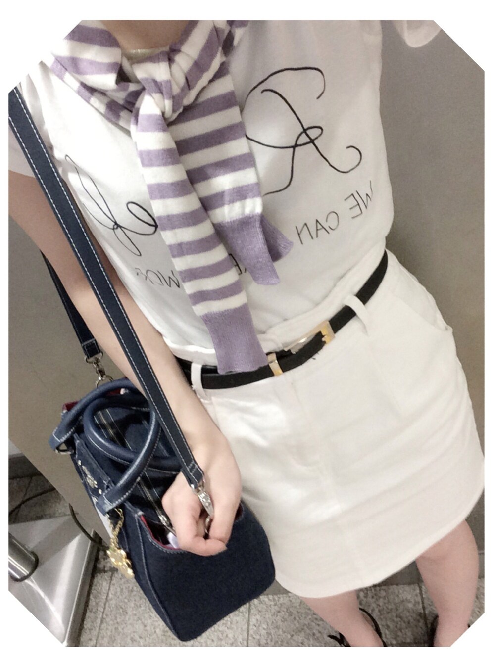 さとみのカーディガン/ボレロ「ウォッシャブルスプリングカラーボーダーカーディガン 」を使ったコーディネート