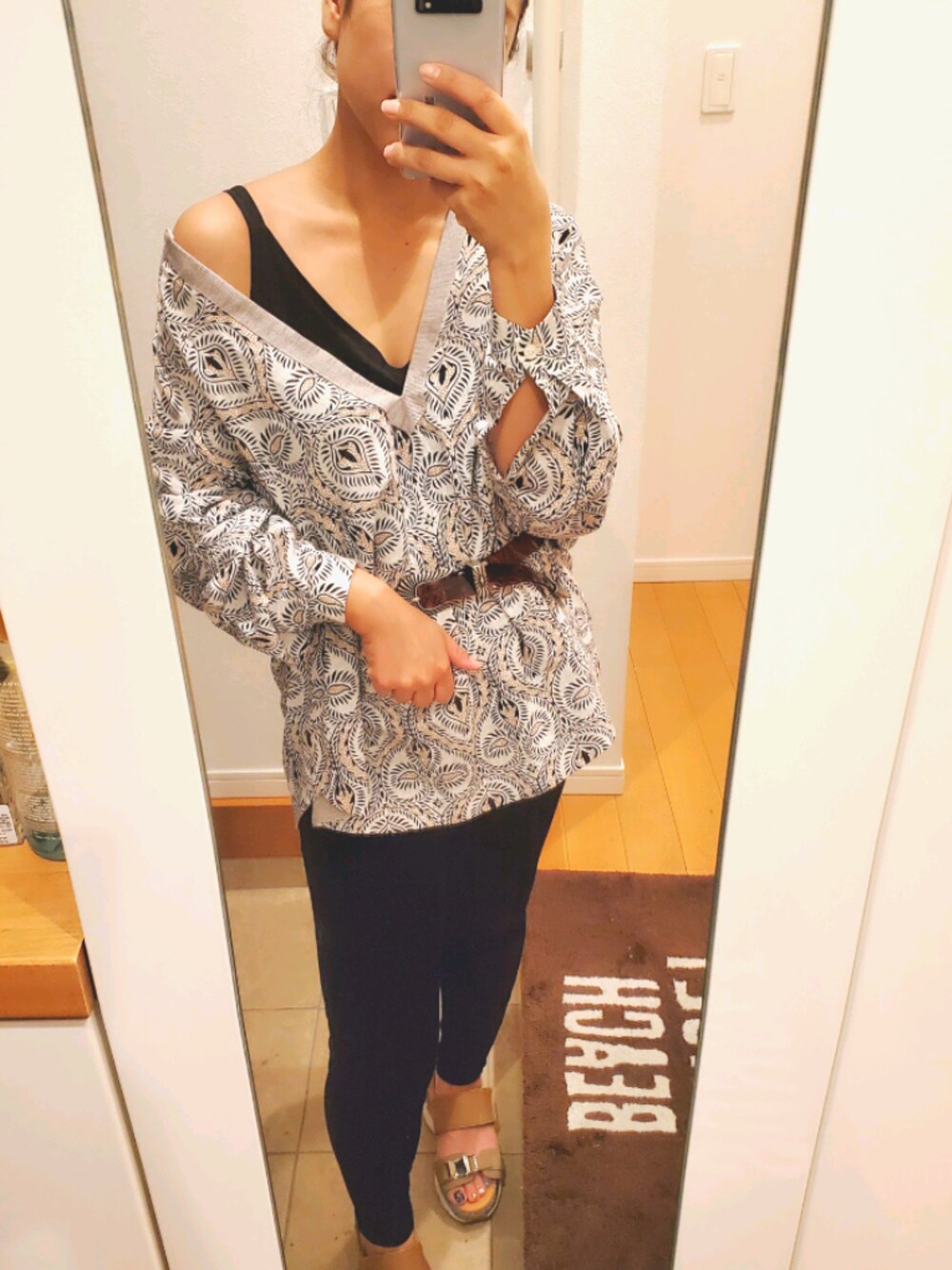 暑くなりすぎる前に、お気に入りのシャツを着てみました。 柄と形が最高にかわいい。履き心地のいいベロアのレギンスとサンダルでオールjuemiコーデ💕