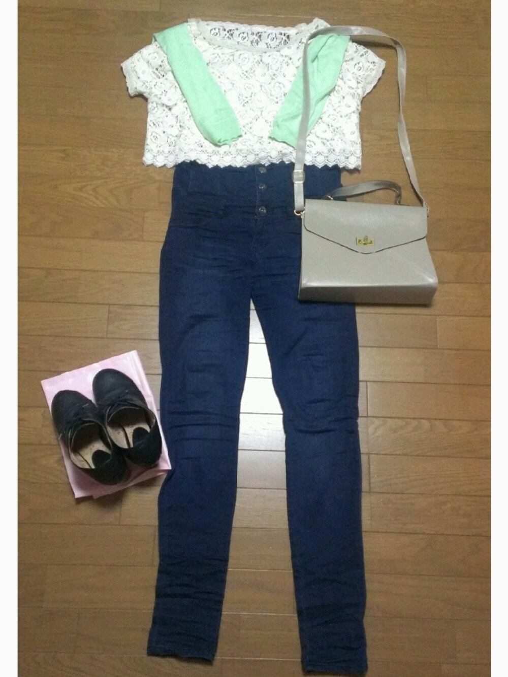 友達からもらったレーストップス! 暖かくなってきてやっと着れる♪♪ GUのハイウエストはきやすくて お気に入りですo(^o^)o レーストップス:もらいもの ハイウエストデニム:GU SAVEしてくださる皆様 ありがとうございます(>_<)