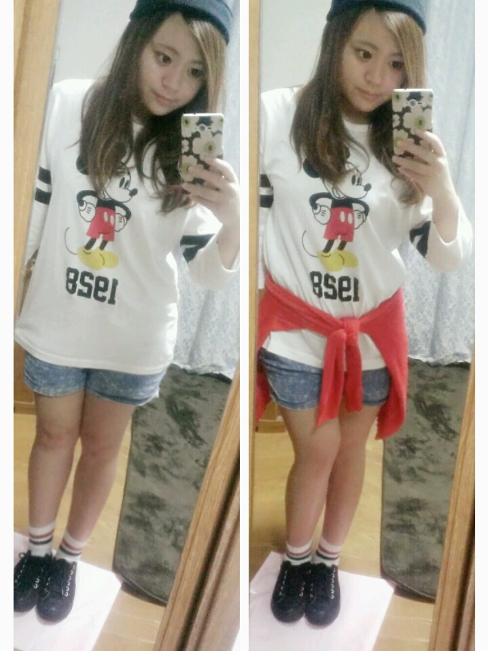 UNIQLOのミッキーTシャツ♪ メンズサイズでちょいとだぼっと! ミッキーT:UNIQLO ショーパン:WEGO スニーカー:GU SAVEしてくださる皆様 ありがとうございます(>_<)♪