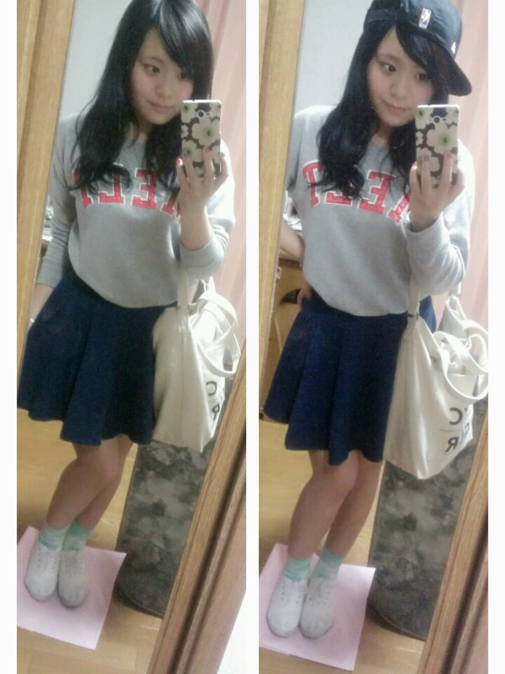 就活のため黒髪((((;゜Д゜))) サーキュラースカート 最近購入♪ ロゴスウェットでカジュアルに!! ロゴスウェット:RETRO GIRL スカート:WEGO キャップ:adidas SAVE してくれる皆様 ありがとうございます(>_<)