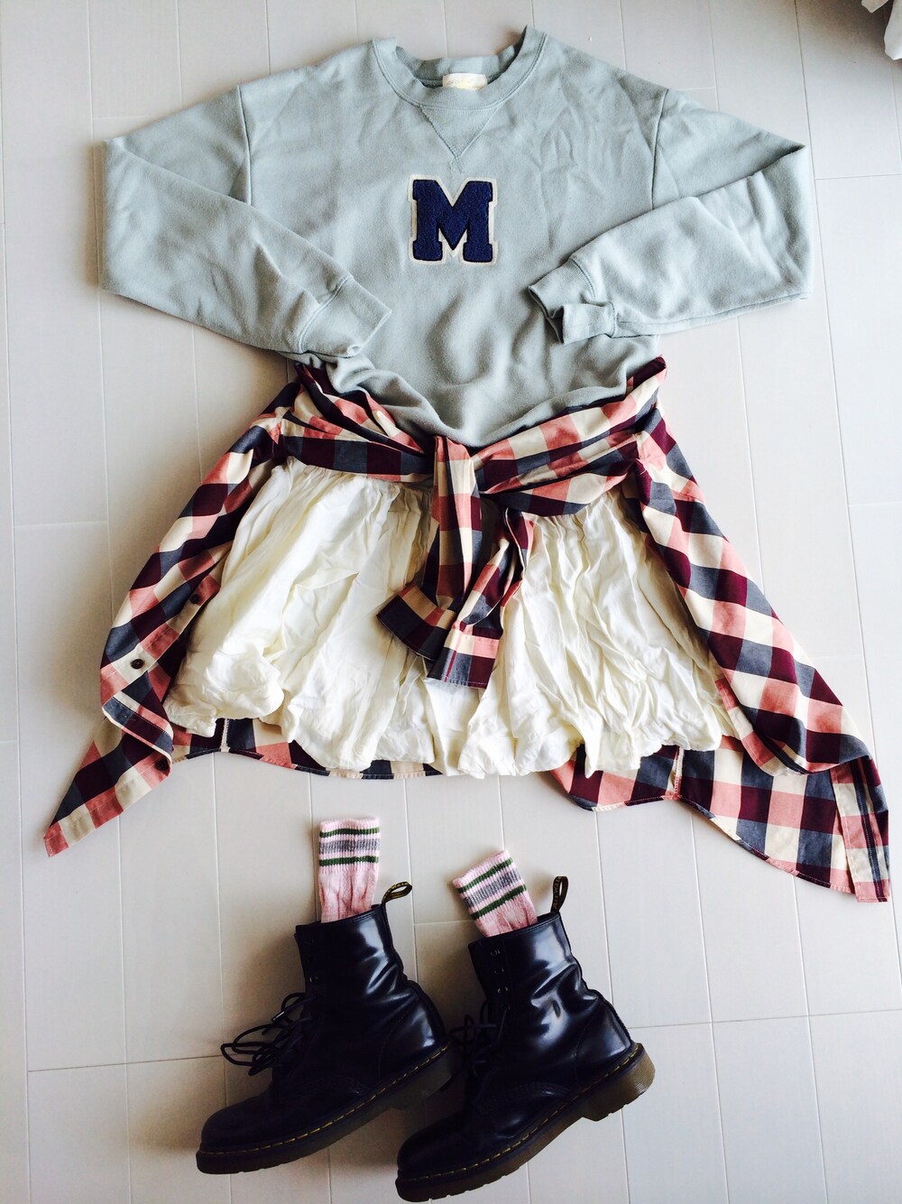 写真を撮る場所をかえてみました。 今日はあったかいので思い切って上着は無しです 昨日ヘアカラー&カットをしたので新鮮な気分で服を着れて嬉しいですd(^_^o) シンプルないい子ちゃんコーデにあえてマーチンを合わせました
