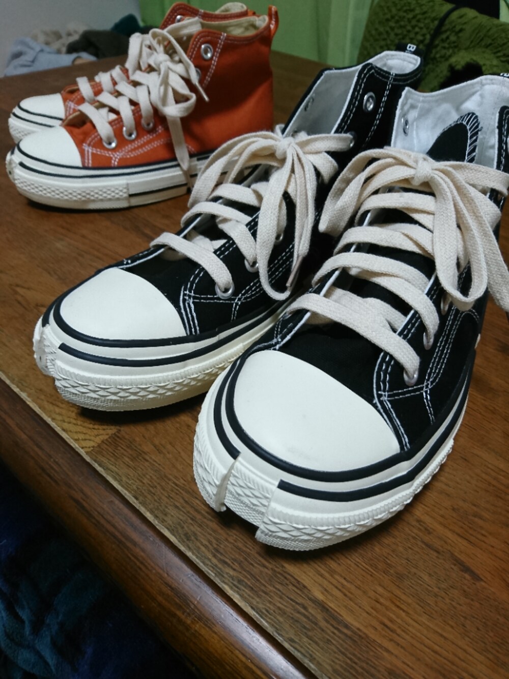 Urcarolのハイカットキャンバススニーカー 2足目から安くなるよって言って嫁の分も買ってオソロに笑 キャンバススニーカー自体初めてだから試しにって感じ サイズもピッタリで一安心 あとは履いて歩いてみてだな とりま ちゃんと届いて良かった! 正直怪しんでたサイトだったけど全然大丈夫だったね。 安いからまたリピートするかも 以上!!!🙌