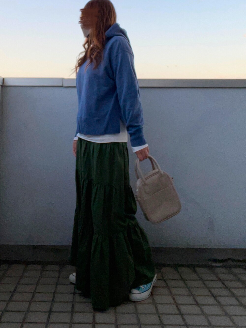 ご覧頂き&いいね・お気に入り・フォローありがとうございます♪ 日が暮れる前に駆け込みで撮影した日のコーデ🌇ちょっと暗かったかなぁ💦 ブルーとグリーンで春らしく🌸