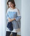 …natsuho…のTシャツ/カットソー「パネルボーダー6分袖チュニックTシャツ」を使ったコーディネート