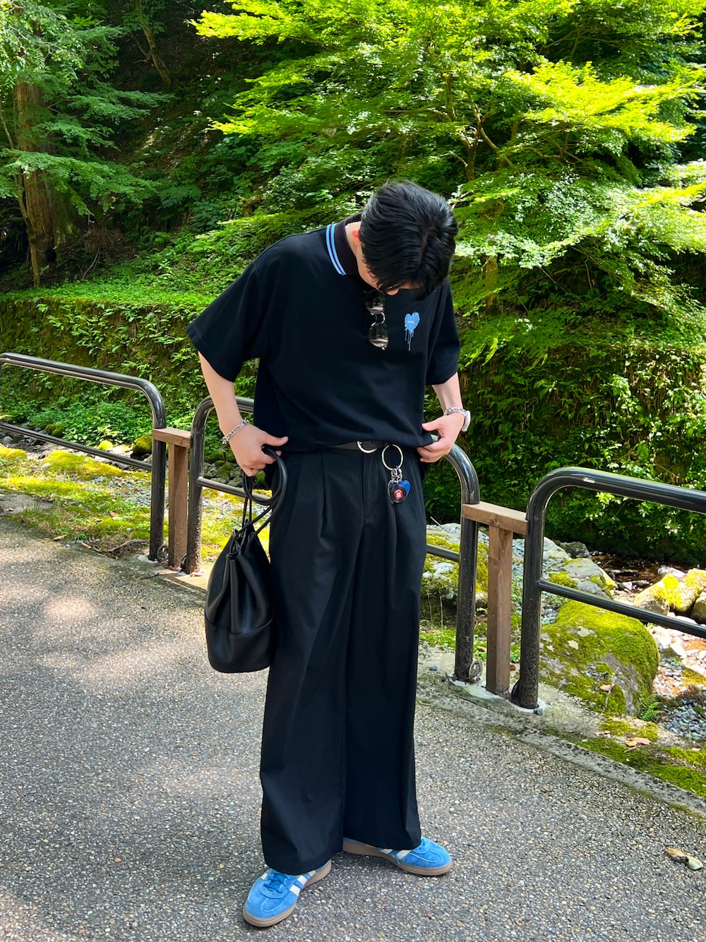 悟士。のポロシャツ「ONE POINT LOGO MOSS STITCH POLO SHIRT / ワンポイントロゴ鹿の子ポロシャツ」を使ったコーディネート