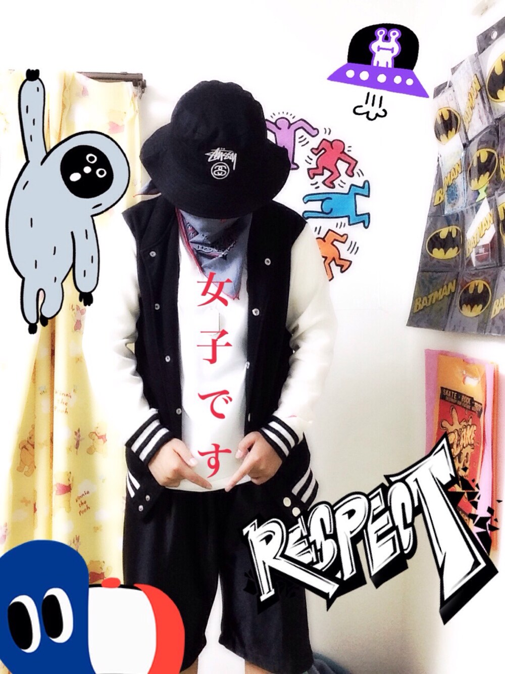 男っぽいですが、女子です! モノトーンでまとめてみました。
