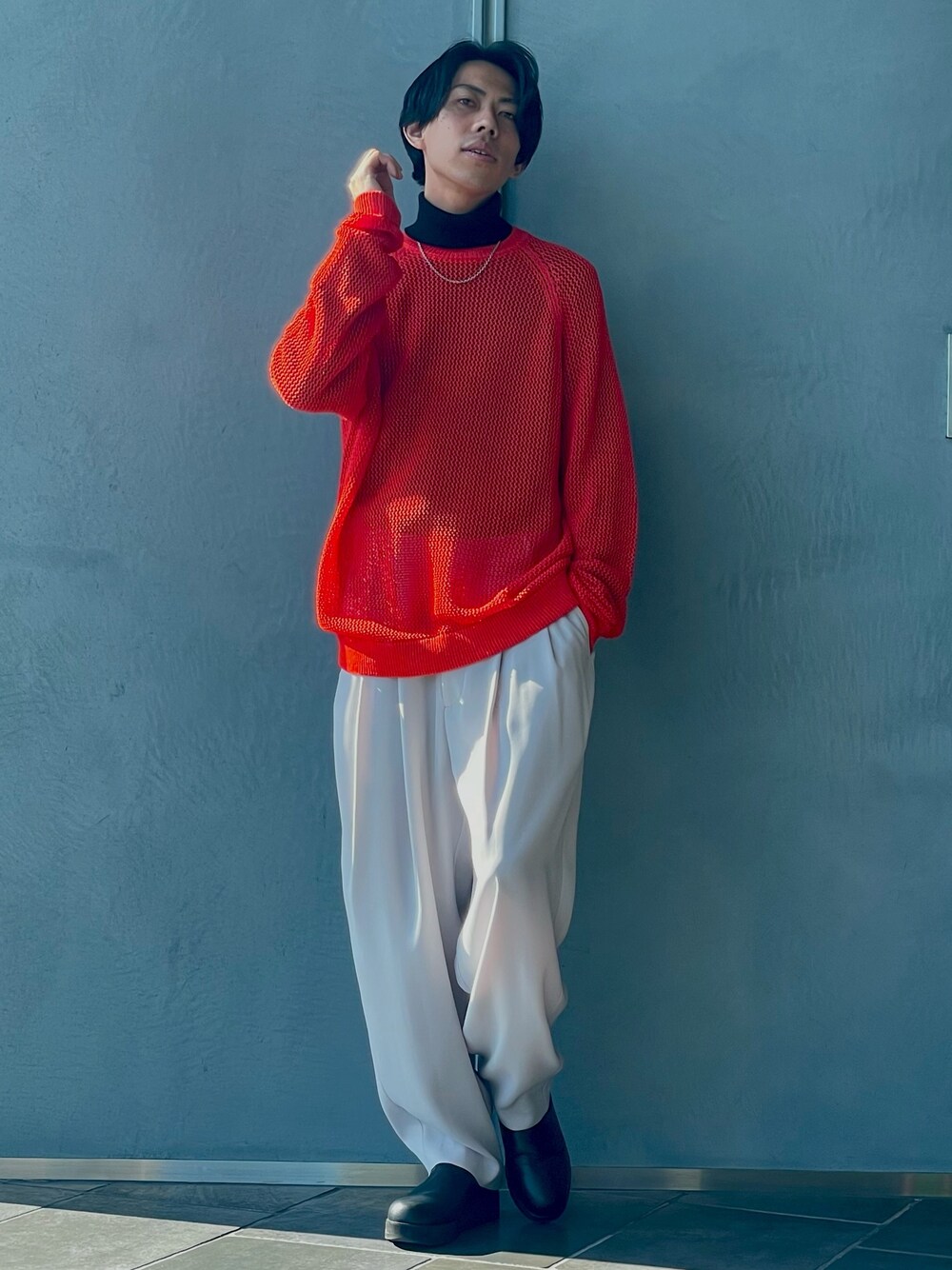 SATORU KASAI(Lui's/EX/store なんばCITY店)のニット/セーター「メッシュ編みビッグニット」を使ったコーディネート