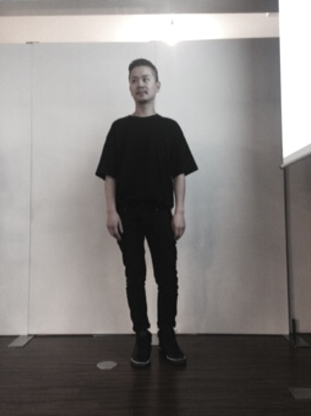 ブラック系のTシャツ/カットソー、ブラック系のスニーカー、ブラック系のデニムパンツを着用したメンズの夏コーディネートの1枚目の写真