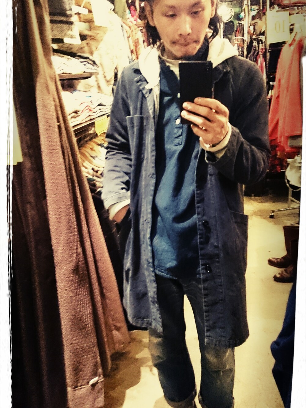 デニムのアイテムで重ね着しまくりました。 濃紺と淡いブルーのデニムの合わせは昔から好きですね(^_^) 久しぶりの投稿だ(笑)