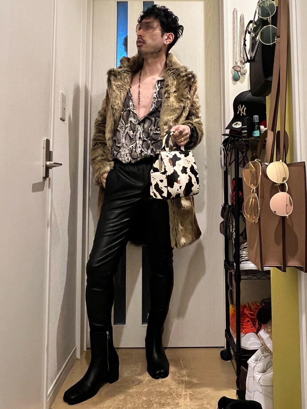 ファーコート✖︎レザーパンツ😏