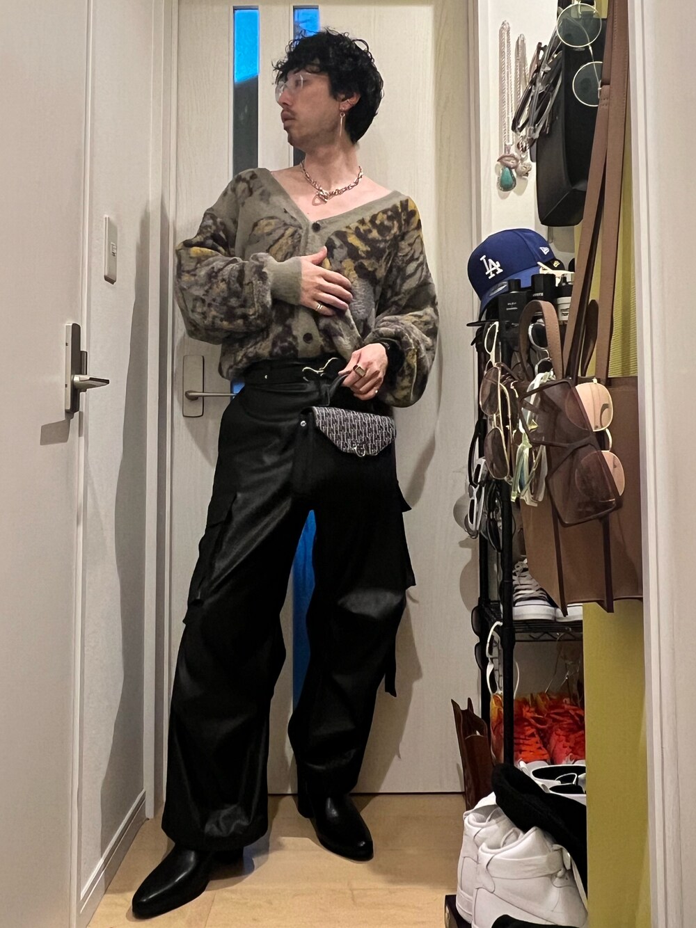 カーディガン✖︎レザーパンツ😏 カーディガンはインして着るのにはまり中😉 最近買ったお気に入り柔軟剤😆これめちゃめちゃおすすめ👍🏼