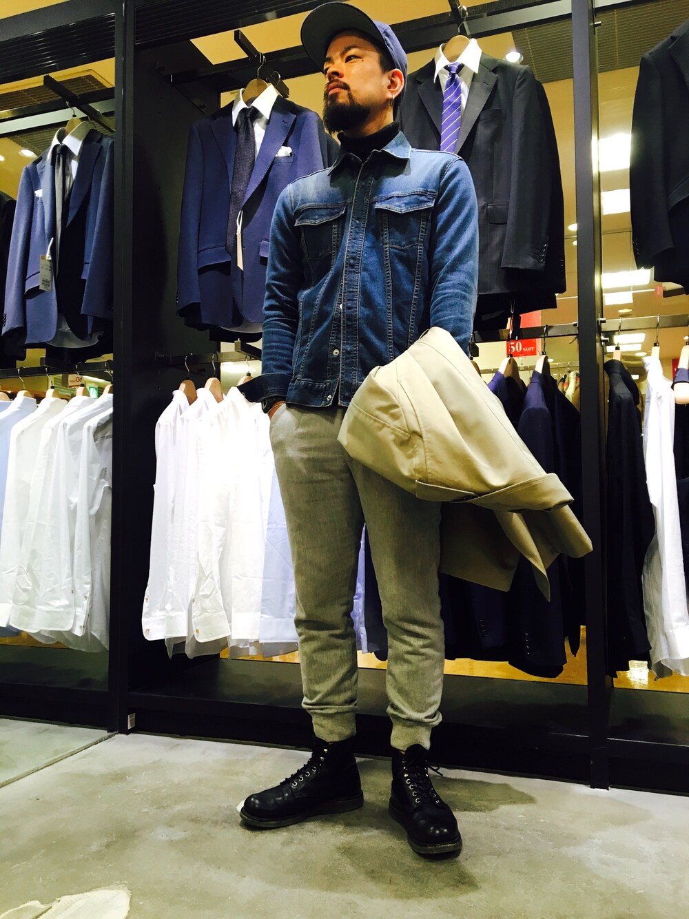 今日は寒いですが、春を意識したトーンで。 Gジャン、トレンチは秋物ですがこの春も使えます。 春が待ち遠しい気分です。 では、