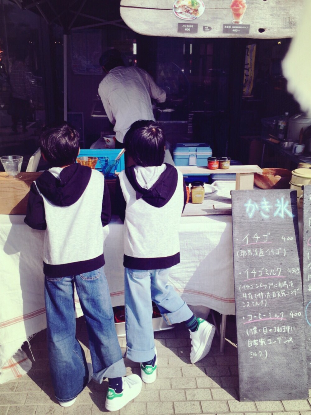 マルシェにてかき氷待ち☺︎暖かくてよかった(ー ー;)